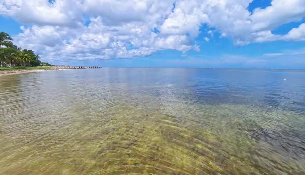 El mar es cristalino y de tonos azulados con matices café claro, distinto al color esmeralda típico de otras zonas del litoral.